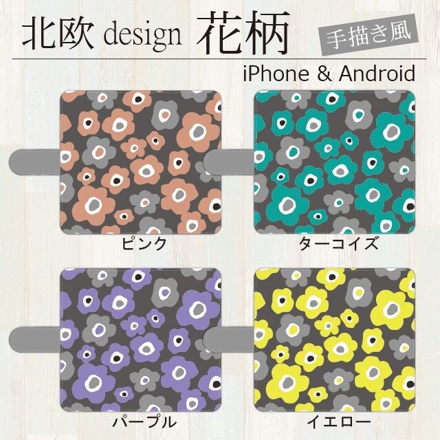 全機種対応★手描き風☆北欧デザイン花柄★手帳型スマホケース★iPhone・Android・AndroidOne★