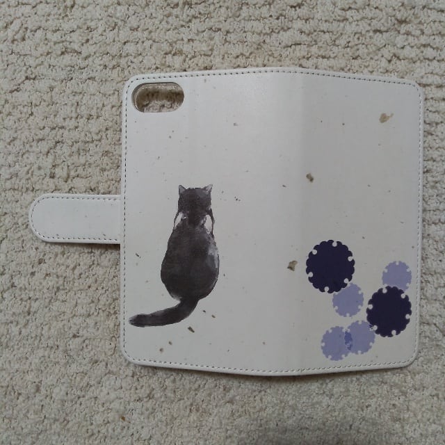 ・和風な猫のシルエットをデザインした、UVプリントの手帳型スマホケースです。