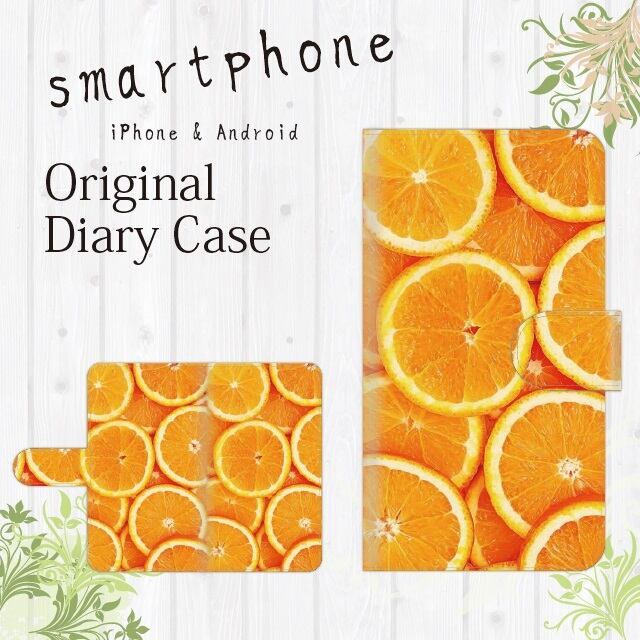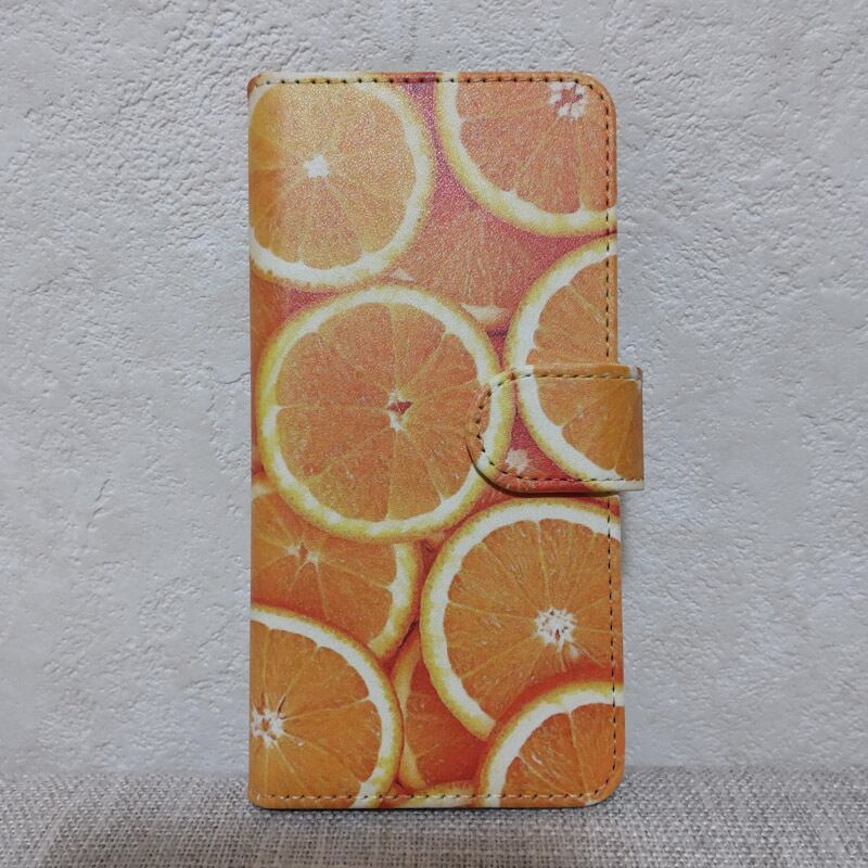 全機種対応★オレンジ☆フルーツ★手帳型スマホケース iPhone/Android/AndroidOne