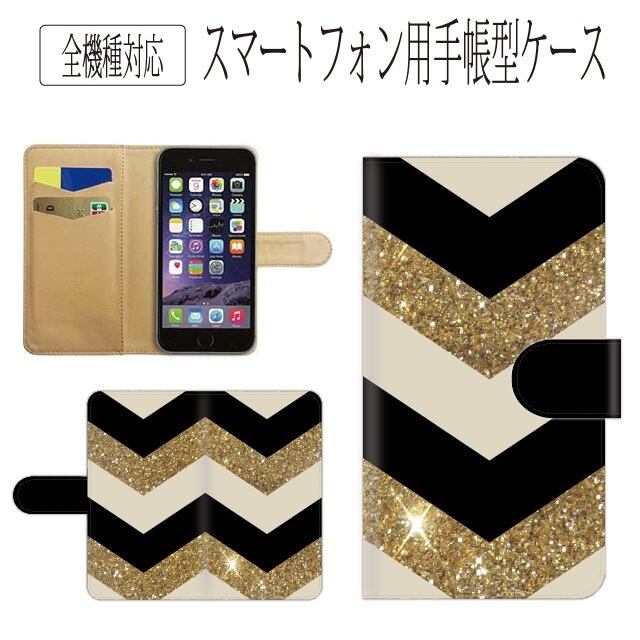 全機種対応★ゴールド☆ラメ調☆シェブロン柄★手帳型スマホケース