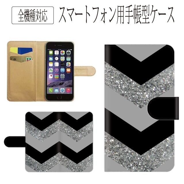 全機種対応★シルバー☆ラメ調☆シェブロン柄★手帳型スマホケース