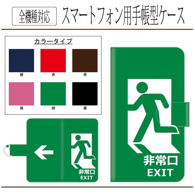 ・非常口のピクトグラムをあしらったオリジナルプリント手帳型スマホケースです。