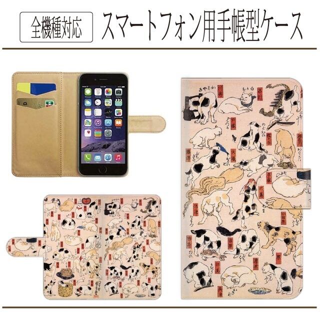 対応機種多数★其のまま地口猫飼好五十三疋★手帳型スマホケース☆歌川国芳☆浮世絵