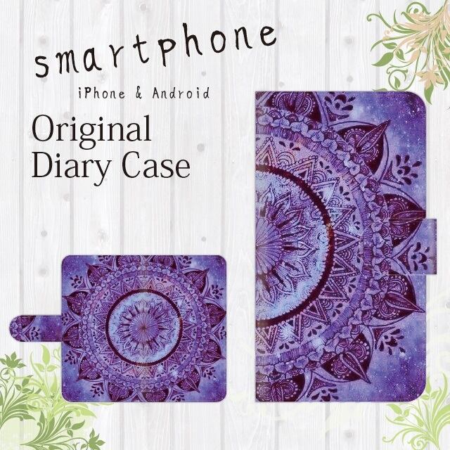 ・曼荼羅模様☆レース調のUVプリント手帳型スマホケースです。