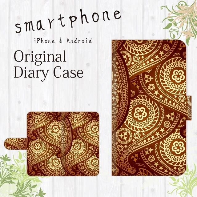 全機種対応★ブラウン☆ペイズリー柄0012★手帳型スマホケース